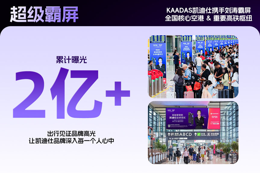 在品牌曝光层面,Kaadas 凯迪仕携手刘涛在全国核心商圈及重要高铁枢纽进行大屏投放,累计曝光量超过2亿,进一步强化了“高端智能锁,凯迪仕全球领先”的品牌定位。