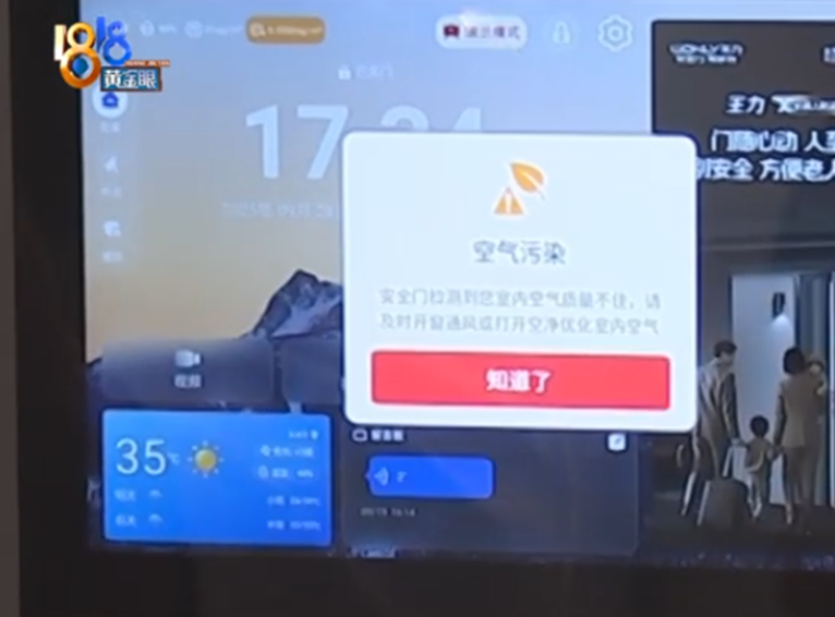 为验证其真实性,知名民生新闻栏目《1818黄金眼》实地探访王力安防。据工作人员介绍,该防盗门采用电化学传感器,室内空气通过进风口进入后,激光实时感测甲醛含量,数据直接显示在门体智能大屏上。一旦检测到甲醛超标,还能自动联动空气净化器、新风系统等设备净化空气。