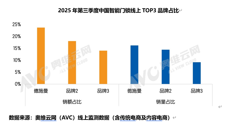 本次双11,市场对麒麟R9等高端产品的强劲需求,正是对其坚持技术升级路线的直接肯定。而将时间统计范围扩大,根据奥维云网2025年智能门锁三季报显示,2025年1-3季度,德施曼凭借深厚的技术积淀与持续的产品创新,在线上2000元及以上高端智能门锁市场稳居零售量与零售额双第一。